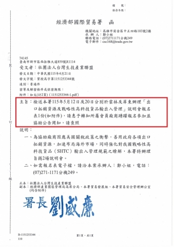 - 2026-04-24 【經濟部國際貿易署】「出口拓銷資源及戰略高科技貨品輸入管理」說明會_貿授高字第1151253344號