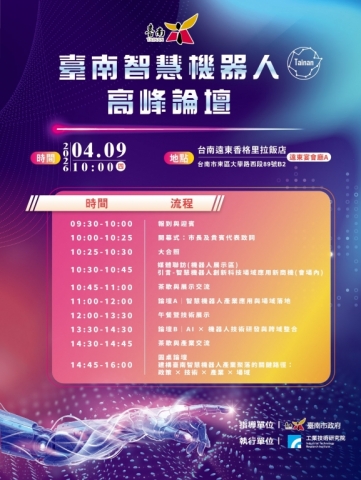 【工業技術研究院】4/9臺南智慧機器人高峰論壇